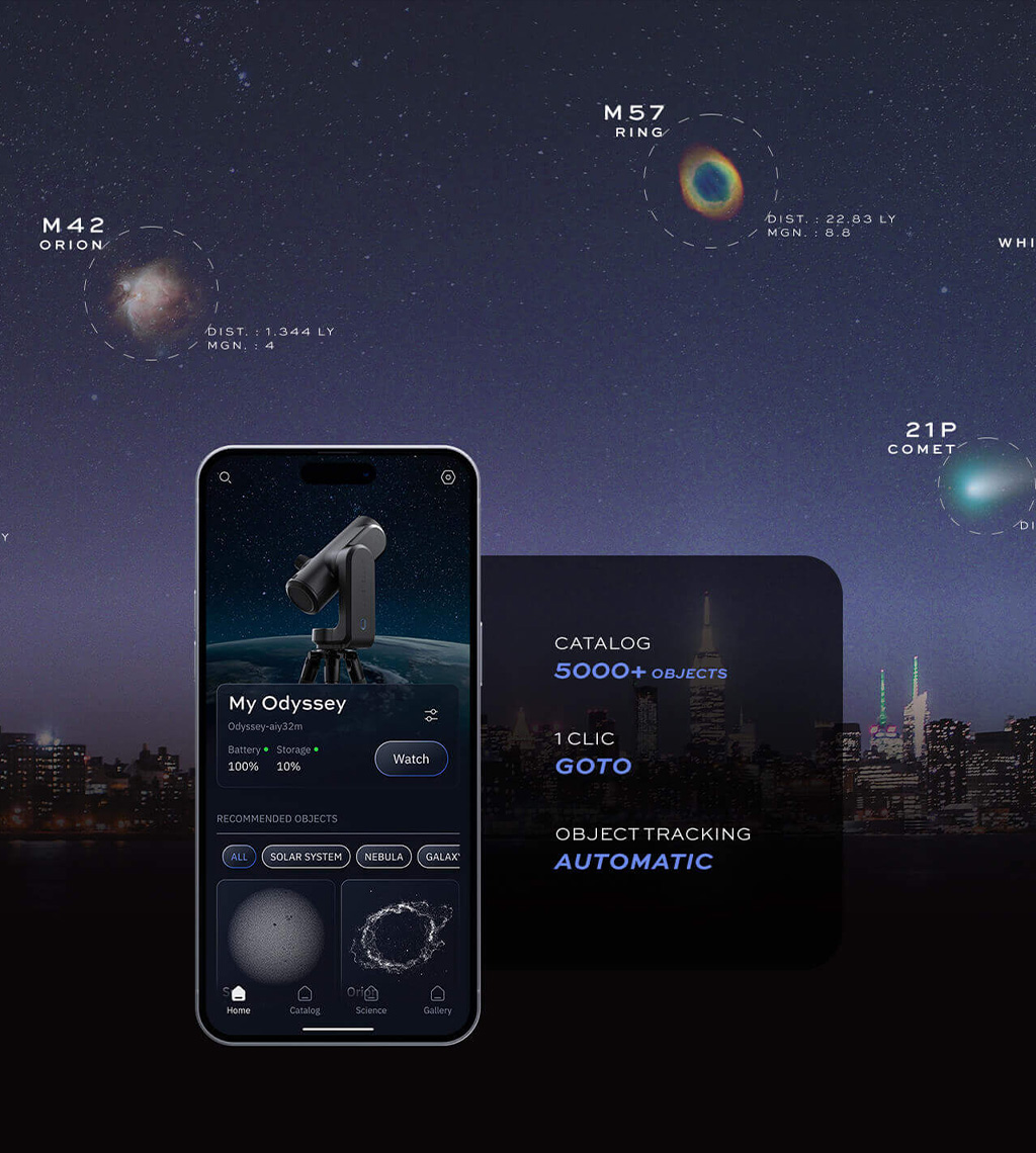 Das Odyssey Pro ist mehr als ein Teleskop – es ist Ihre persönliche Sternwarte. Entwickelt für Menschen, die den Himmel wirklich beobachten wollen – nicht nur auf dem Smartphone.