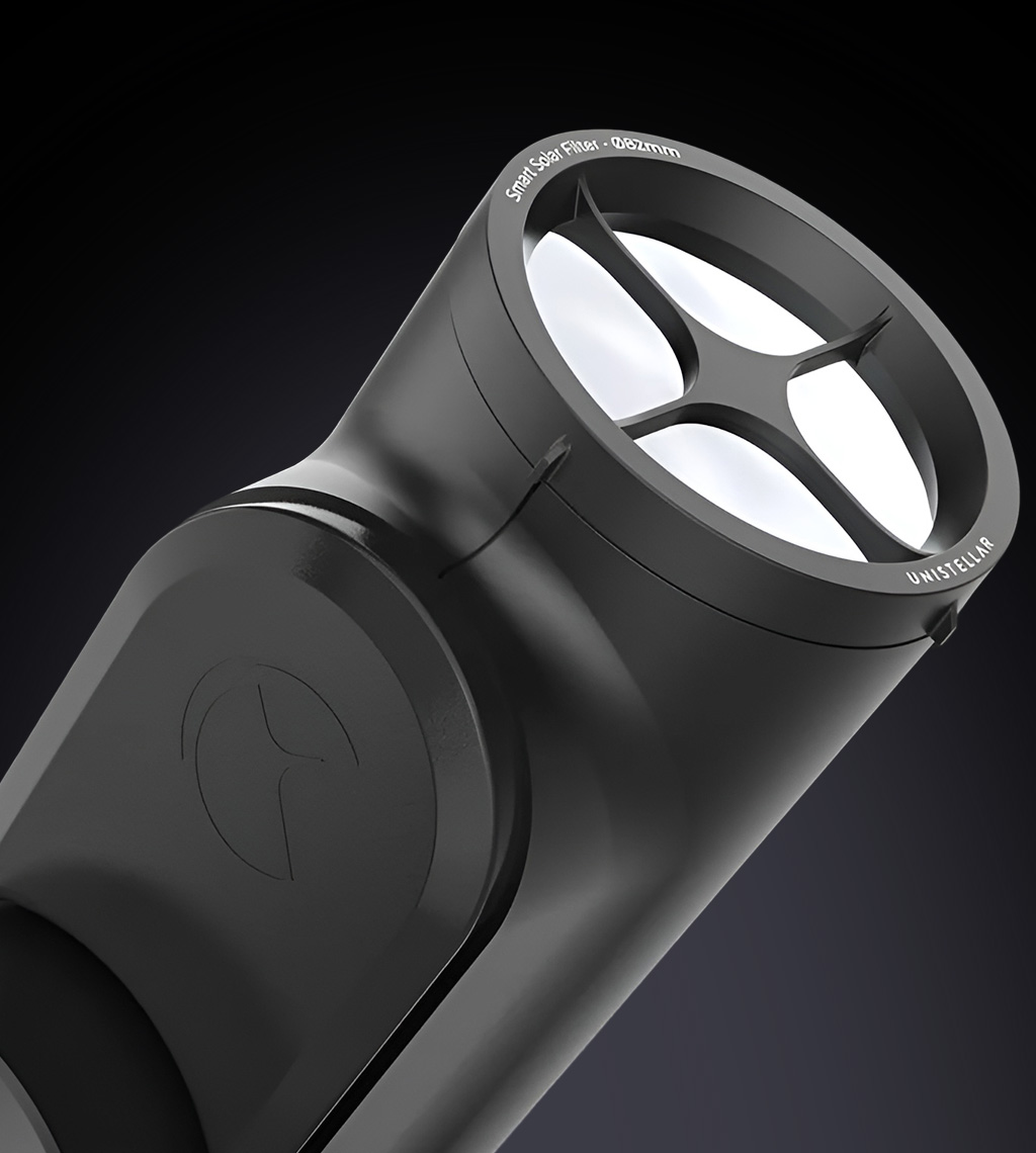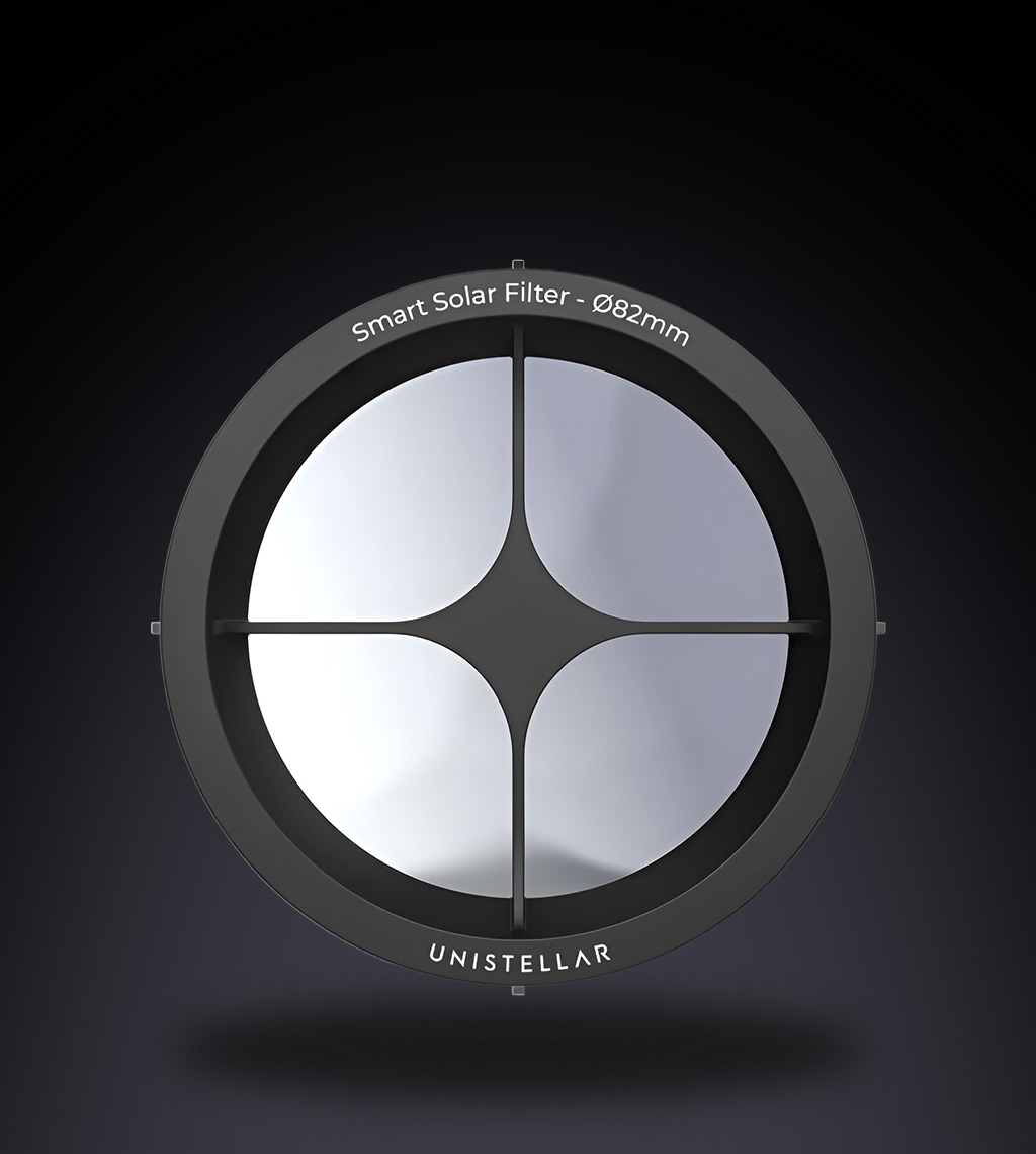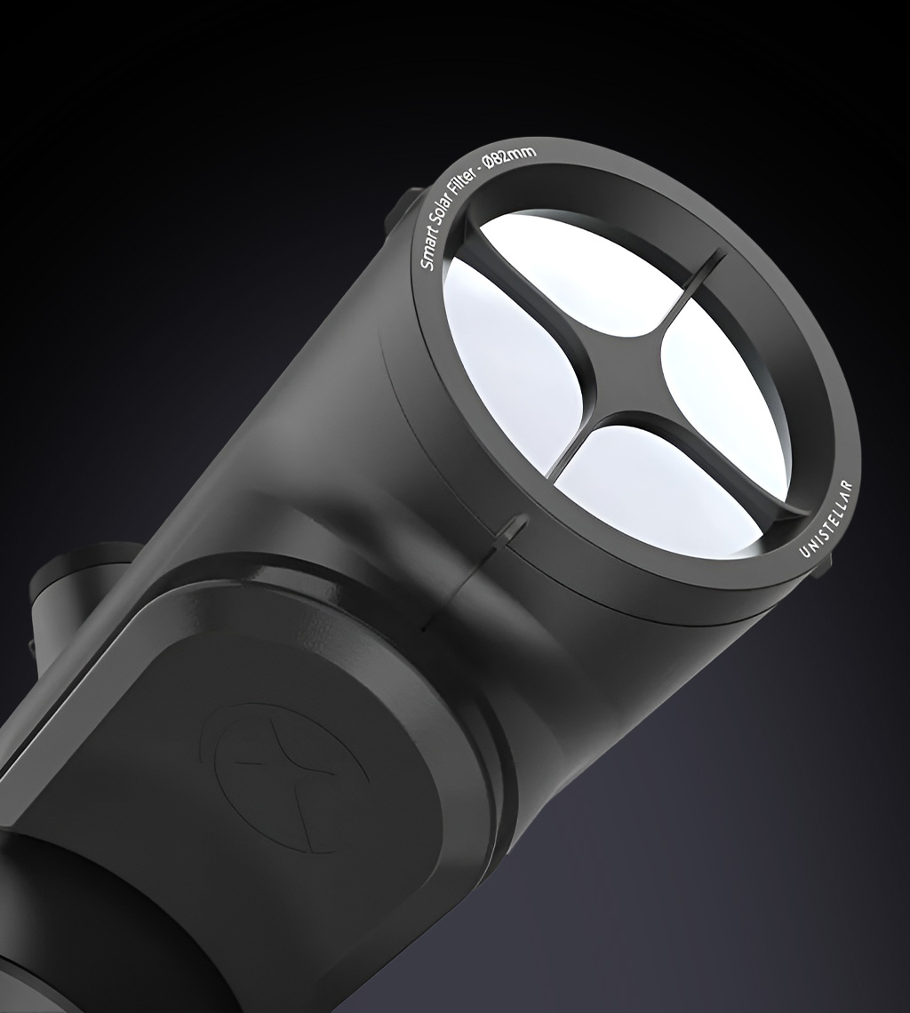 Entdecken Sie die andere Seite des Himmels. Mit dem **Smart Solar Filter** verwandeln Sie Ihr Unistellar Odyssey in ein vollwertiges Sonnenobservatorium – sicher, schnell und smart.