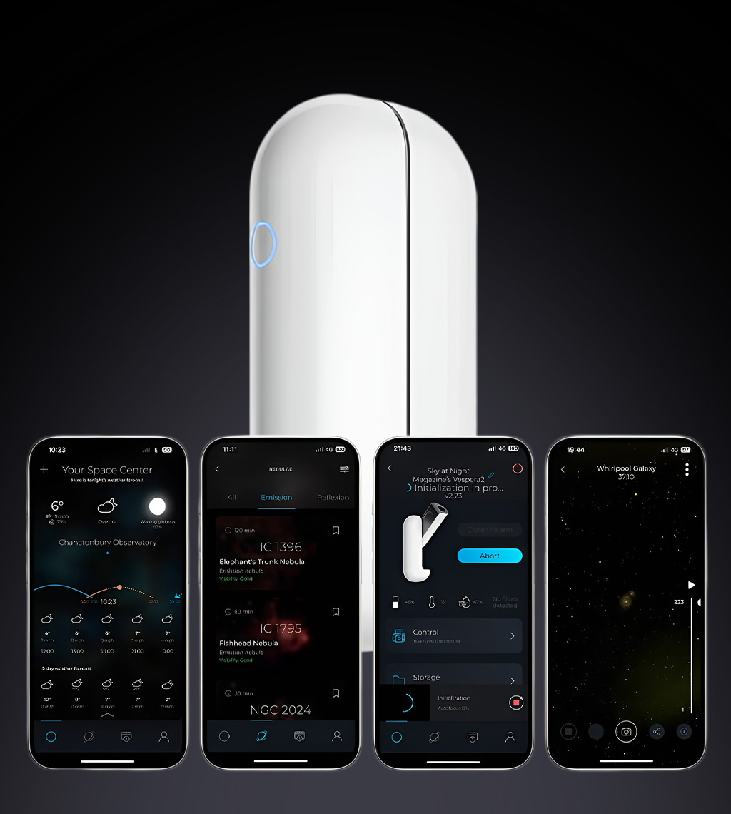 Das Vespera II ist der neue Standard für smarte Astrofotografie. Es macht die patentierte **CovalENS-Technologie** erschwinglich und liefert dank des modernen Sony-Sensors beeindruckende Bilder – ultra-kompakt und reisefreundlich.