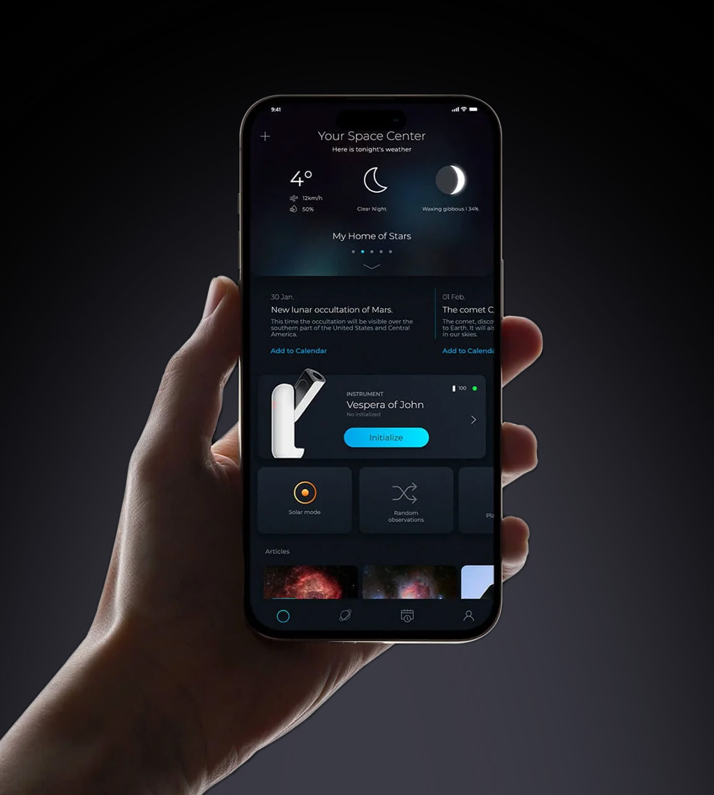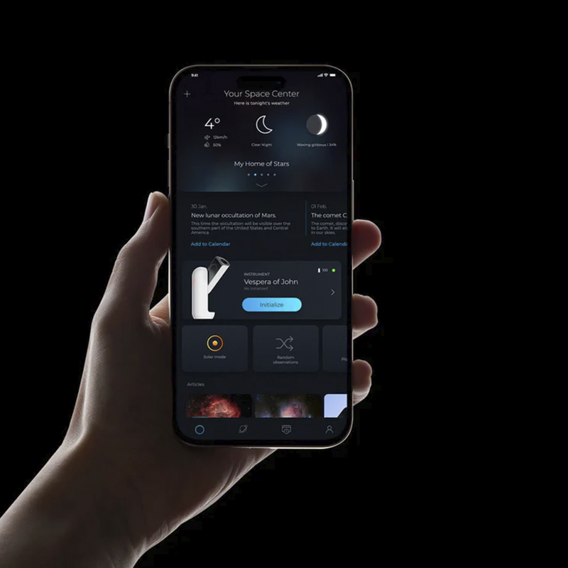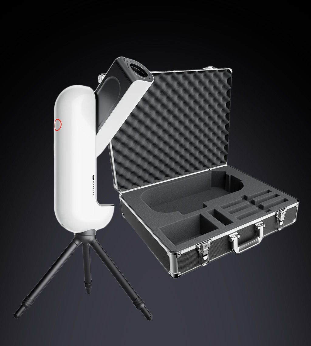 Das Vespera Pro ist die nächste Evolutionsstufe der Smart-Teleskope. Ausgestattet mit einer **apochromatischen Quadruplet-Optik** und dem hochauflösenden 12.5 MP Sensor, ist es kompromisslos für perfekte Astrofotografie entwickelt worden.
