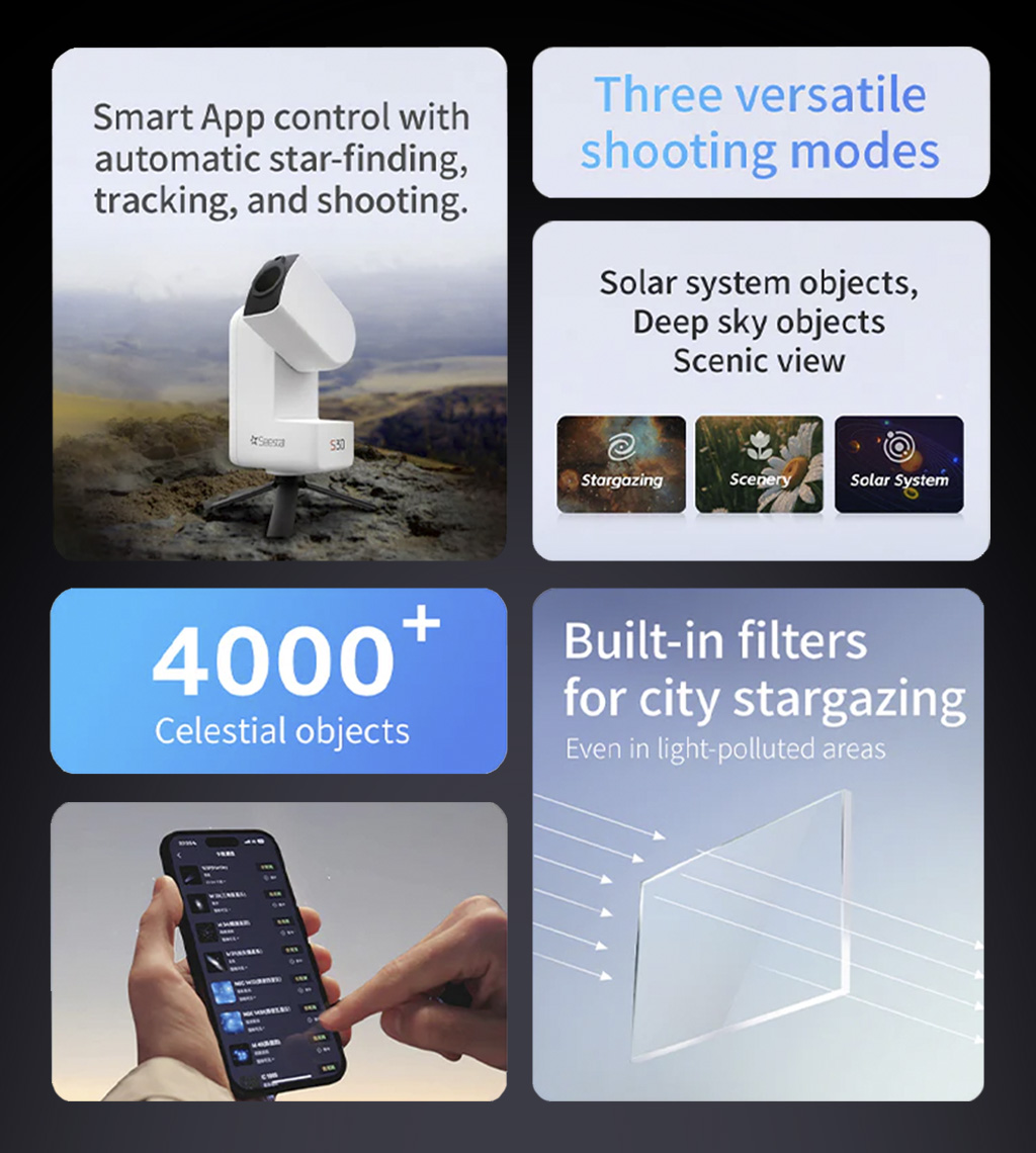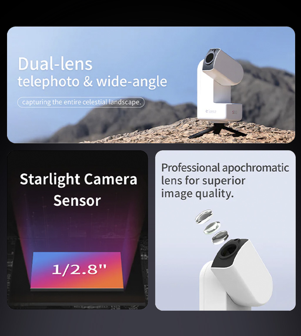 Das ist der große Vorteil des S30: Es ist ein Hybridsystem. Dank des dualen Linsensystems können Sie tagsüber gestochen scharfe Fotos von Vögeln oder Landschaften machen und nachts nahtlos zur Astrofotografie wechseln. Es ist Ihr Begleiter für rund um die Uhr – nicht nur für die Nacht.